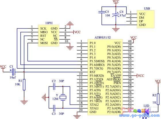 AT89S51/52单片机的最小系统电路原理图