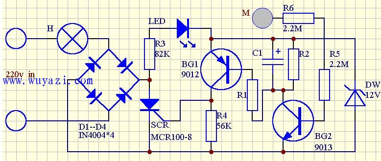 延迟开关电路见图D1–D1,SCR 组成开关的主回路,BG1,BG2 等组成开关的控制回路。