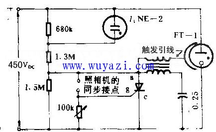 本电路能对照相馆的同步接点提供保护,当可控硅用GE4JL8B代替时,可用作辅助闪光。