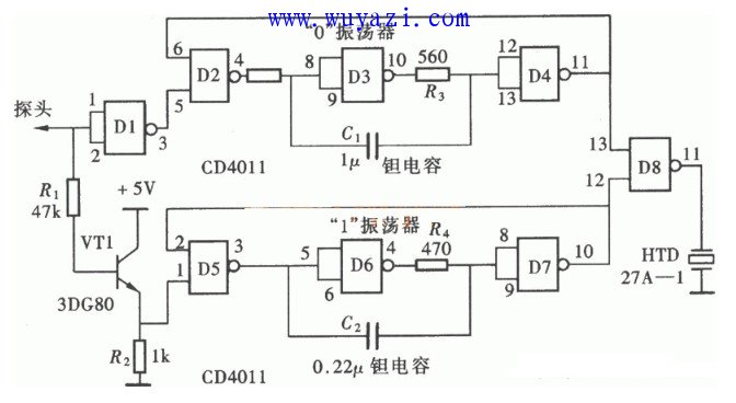 采用CD4011的发声型逻辑笔电路图