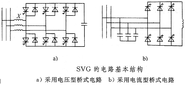 因此,为了维持桥式交流电路的正常运行,其直流侧仍要一定天寸的电感或电容作为储能元件,但储能元件的要求容量远小于SVG。在常规SVC中,所需的存储元件的容量必须至少与供给无效功率的容量相等。因此,S中储能元件的体积和成本远低于相同容量SVC。根据直流测的存储元件,SVG分为电型桥接电路和电流型接电路两种,其电路基本结构如图1a和图1b所,采用了电容器和电感器两种存储元件,电压型桥接电路必须电联连接电抗器并组装到电网中。